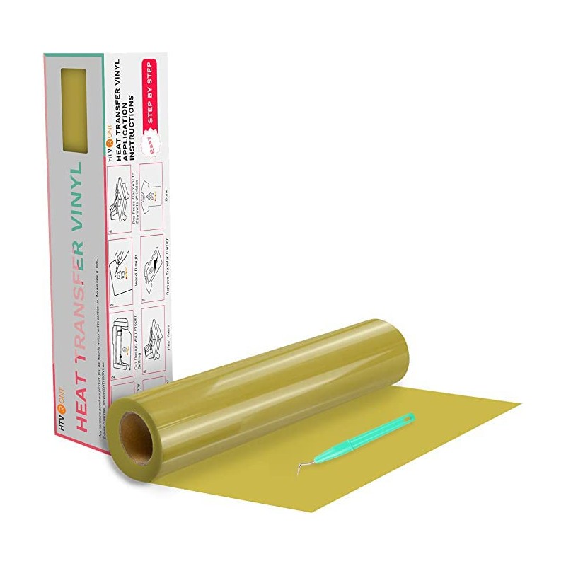 HTVRONT Heat Transfer Vinyl-12In x 20Ft Gold Iron on Vinyl Roll,HTV Vinyl Roll for T-Shirt Clothing and Other Fabrics(Gold)