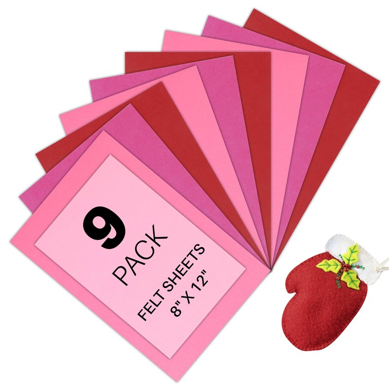 - 9PCS 8X12INCHES FELT FABRIC SHEETS. HTVRONT felt sheets for crafts come with 9 felt sheets in 3 red assorted colors. They are A4 - 8 x 12inches(20 x 30cm) in size, thick 0.04inches (1.0mm). Our craft felt sheets are good for many craft projects and sewing handmade items