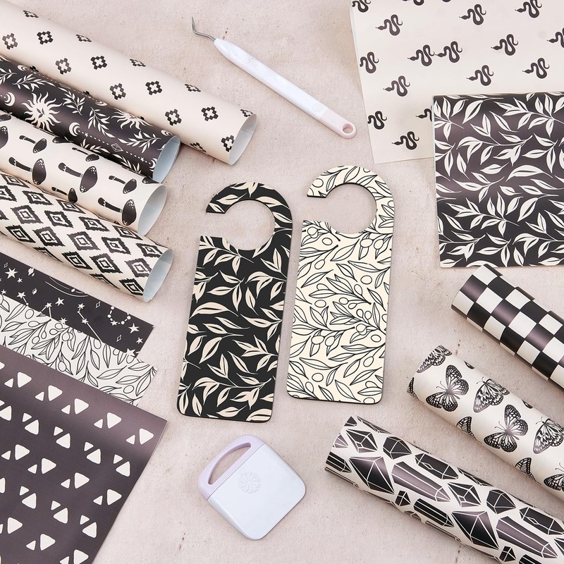 - 【Unique Design 】This boho permanent vinyl include 12 sheets with different colors and designs and two tansfer tape , enough quantities for you to create your DIY crafts.