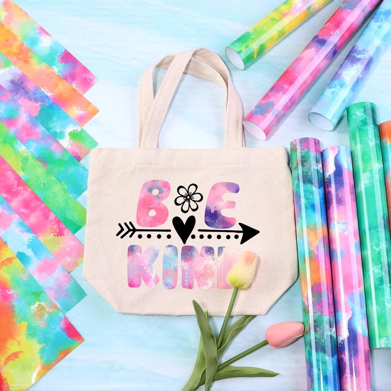 • 【GREAT PRESENT】It would be meanful to use our tie dye HTV heat transfer vinyl to DIY a special present for your friends, families, teachers or colleagues and other your loved people