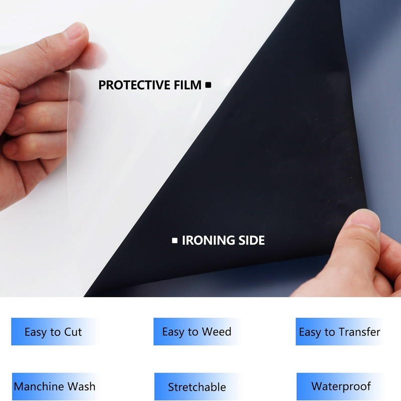 - calcomanía y protección: nuestros rollos de vinilo de transferencia de calor exhiben una adherencia excepcional, se adhieren perfectamente a las telas sin decoloración, pelado o agrietarse incluso después del lavado. Nota: Espere 24 horas antes del primer lavado. Además, la película protectora específica en la superficie ayuda a adherirla, lo que permite volver a aplicarla después de rasgarse, lo que ayuda a conservar el material.