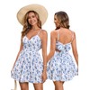 HTZMO Women Casual Summer Floral Mini Sundress V Neck Bow Tie Backless Ruffle...