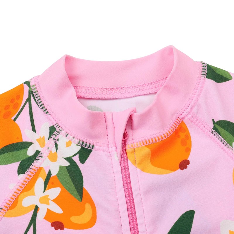 HUAANIUE - Traje de baño de una pieza con cierre de cierre para bebés y niñas pequeñas con protección solar UPF50+, Rosa/naranja., 6-12 Meses