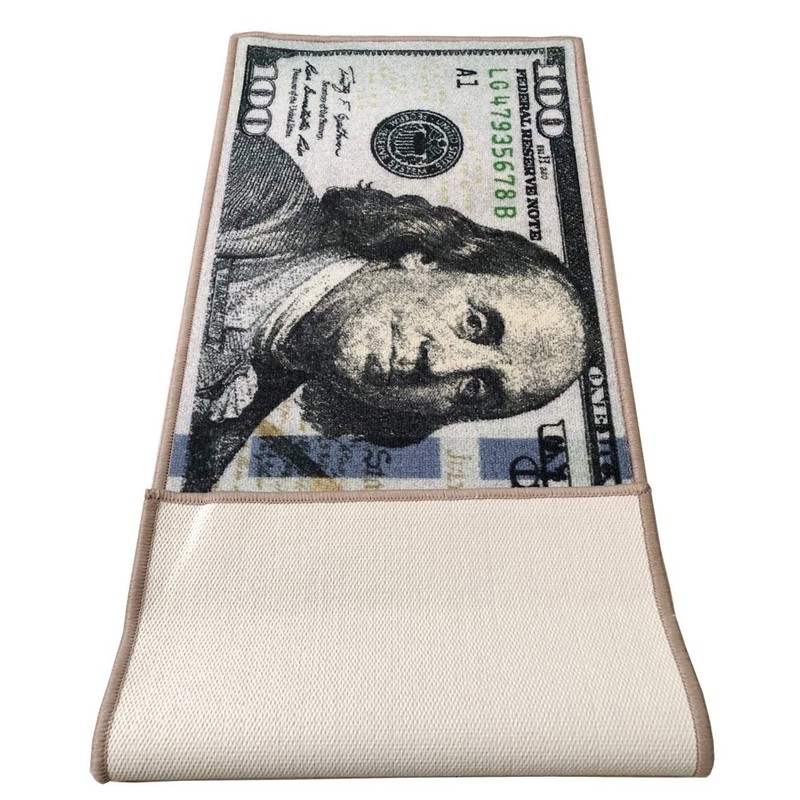 - La alfombra antideslizante Benjamin de 100 dólares ($100) cuenta con un diseño estampado genial y atractivo con temática de dólares que puede añadir un toque instantáneo de personalidad a cualquier espacio