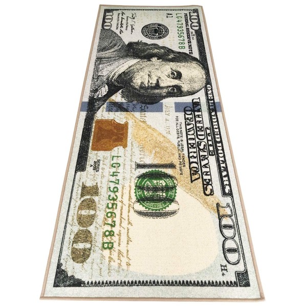 HUAHOO - Alfombra de dinero de 100 dólares para sala de estar, cocina, lavadero, recámara, baño (22 x 53 pulgadas)