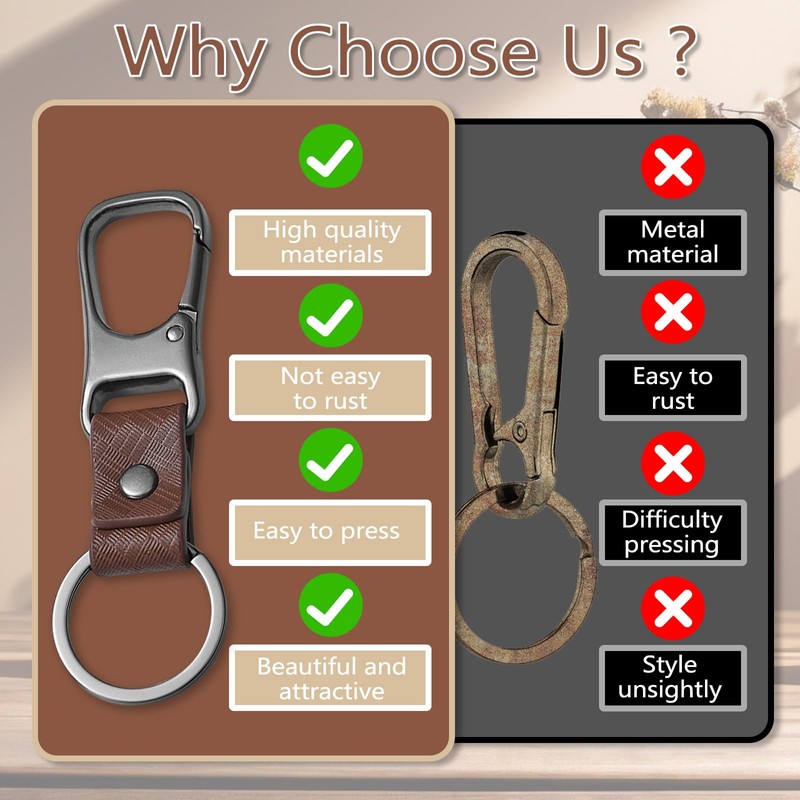 Simple Care: Wipe our key chain with clip with a clean soft cloth regularly. Keep it away from humidity to prevent rust, sharp objects to avoid scratches, and direct sunlight on the leather.