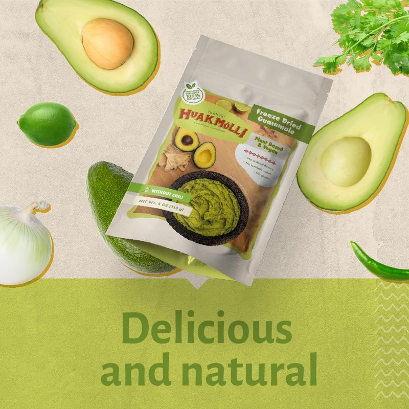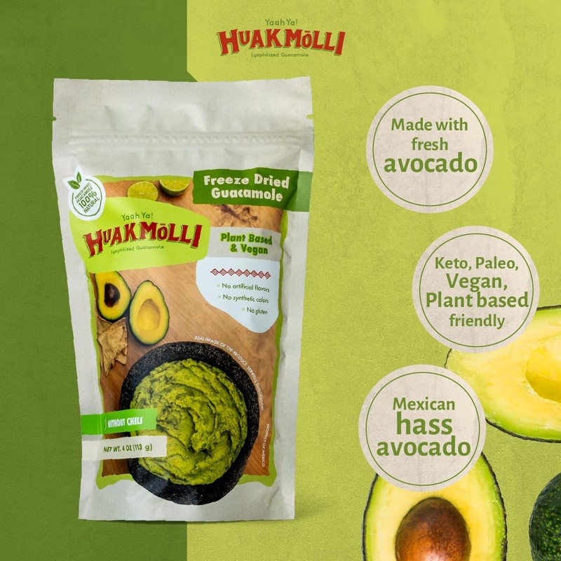 Huakmolli Freeze Dried Guacamole made with 100% Fresh Hass Avocado | 4 oz - Perfect for Gatherings of 4-8, Makes about 3 Bowls of Authentic Guacamole | Ideal for Parties - Game Days or Party Snack for BBQs