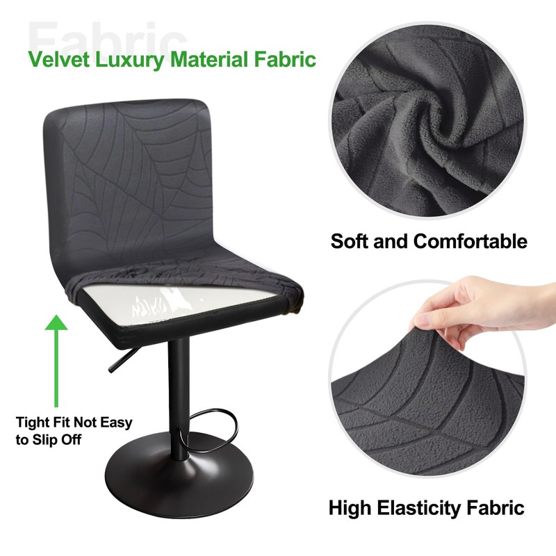 HuaLiSiJi Stretch Bar Stool, Chair Covers, Leaf Pattern, Velvet Bar Chair Covers, A Soft Texture, Stretchy, Wrinkle-Free, Washable, Dustproof for Hotel, Restaurant, Kitchen (1, Dark Grey)
