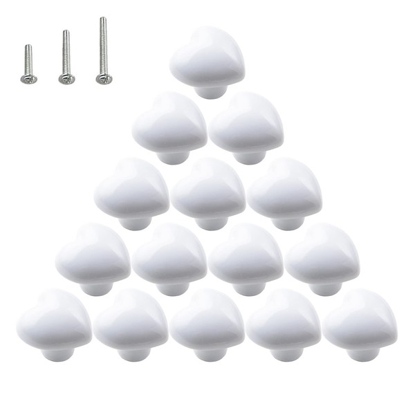 HUAMULAN 15PCS Glossy Ceramic Knobs Heart Shape Cabinet Dresser Pulls Door Handles Cupboard Wardrobe Drawer,White