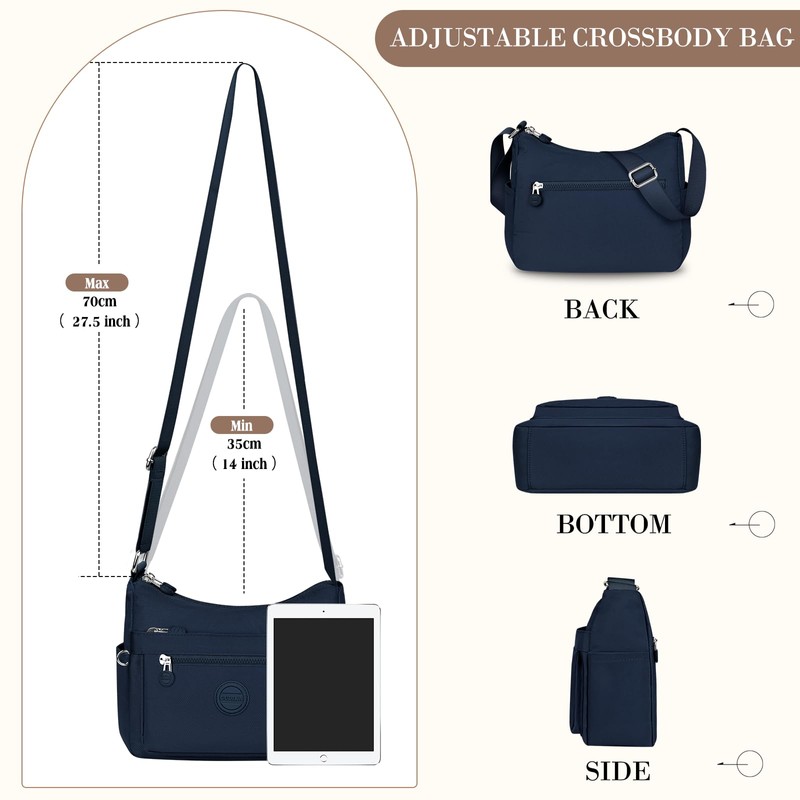 HUANLANG Nylon Crossbody Bags for Women Large Lightweight Travel Purse Waterproof Multi Pocket Shoulder Bag