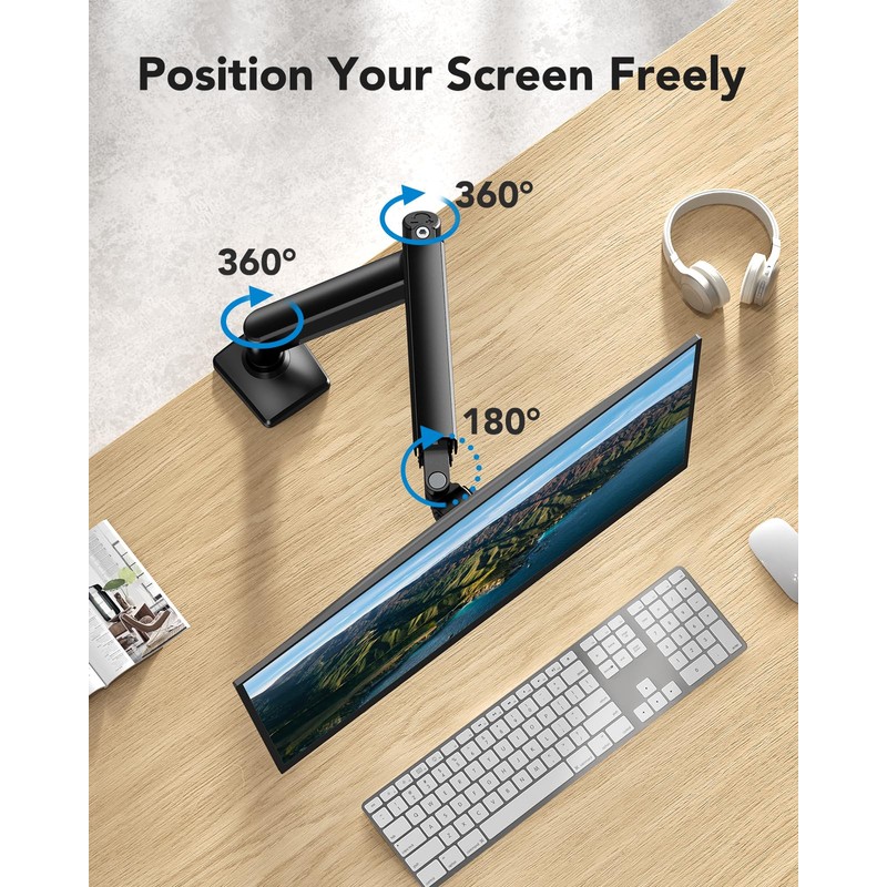 - Optimal Screen Flexibility: Enjoy +/-90° swivel for easy screen sharing, +90°/-35° tilt for the perfect screen angle, and 360° rotation for landscape or portrait orientation. Whether you spend your day collaborating with colleagues or competing in gaming tournaments, this single monitor arm provides flexible screen positioning to take you to the next level
