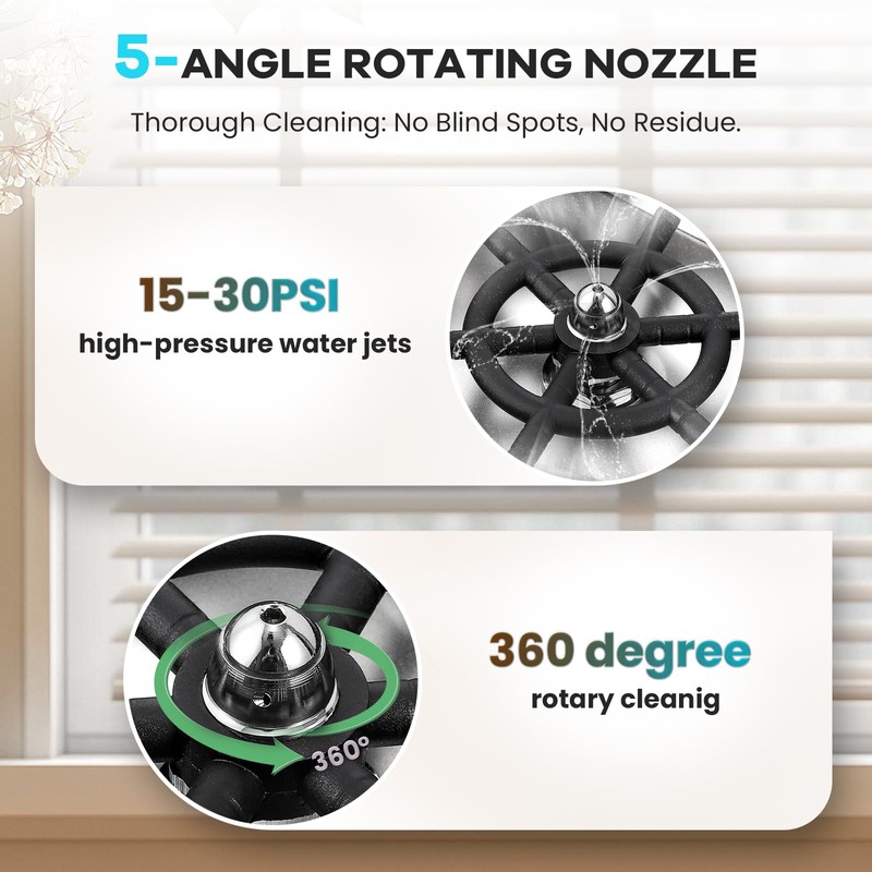 - [5-angle rotating nozzle] The five-hole spray nozzle of the espresso rinser rotates 360 degrees, delivering high-pressure water jets for thorough cleaning. No blind spots, no residue—just spotless cups every time