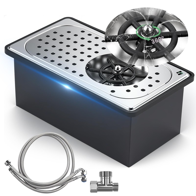 - [5-angle rotating nozzle] The five-hole spray nozzle of the glass rinser rotates 360 degrees, delivering high-pressure water jets for thorough cleaning. No blind spots, no residue—just spotless cups every time