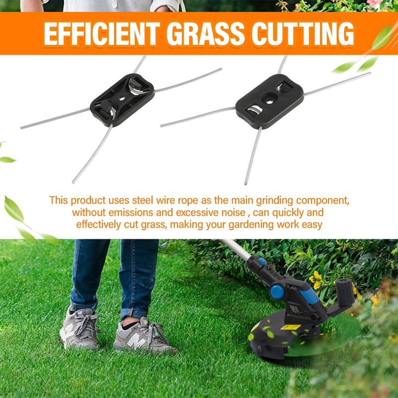 1. This premium steel wire trimmer head is made of 1 plastic board and 2 durable grass trimmer ropes.