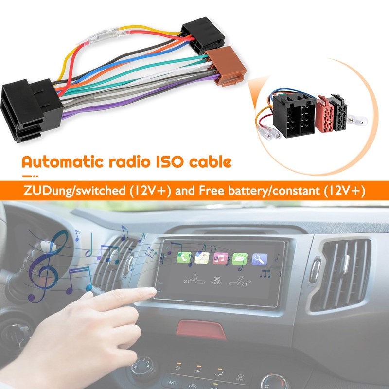 - Connection cable 2 x 8 pin ISO plug car radio to 16 pin ISO cable socket. Compatible with all vehicles with a standard ISO connection
