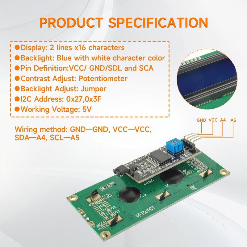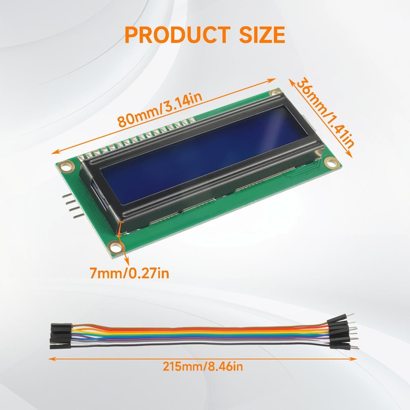 - The blue LCD display with I2C serial interface, LCD screen can display 2-lines x 16-characters.