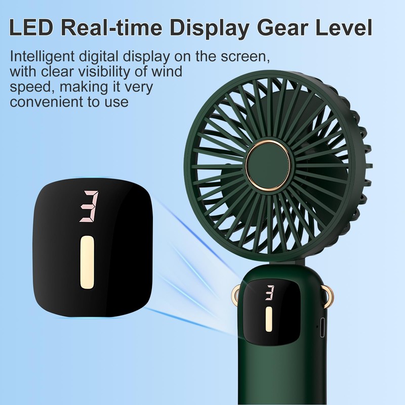 - [Lightweigh and Digital Display] Our handheld fan is compact and lightweight, weighing less than a standard cell phone, you can easily put the mini fan into your handbag and take it anywhere. The mini fan features a smart digital screen that displays speed level to allows you to easily adjust the fan to the ideal air speed