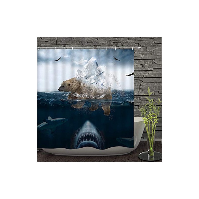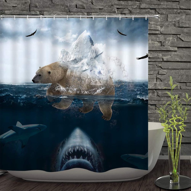 HUAZIYU Personality Creative Polar Bear Deep Sea Shark Background Modern Minimalist Shower Curtain Sets for Bathroom Fabric Machine Washable Digital Printing Decor with 12 Hooks, 72 x 72 Inches