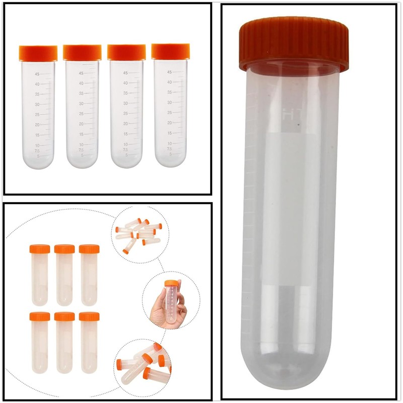 1.Plastic measuring tube with screw caps for centrifuges and laboratory test, 50ml content, easy to read liquid volume, good sealing cap, samples do not volatilize.