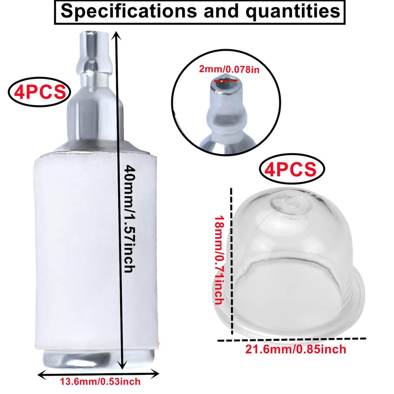 - Fuel hose: approx. 150 cm long, tubes with inner diameters of 2 mm, 2.5 mm and 3 mm. You can cut the length you want, Primer Bulb: the primer bulb service kit is made of high quality plastic, which is durable, rust-proof and corrosion resistant.