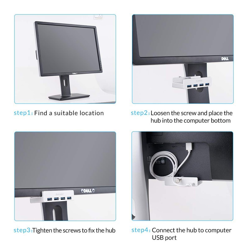 - Hub de diseño de abrazadera: el buje USB 3.0 está equipado con un clip de tornillo ajustable y fuerte, puede adaptarse al grosor de 0.39 a 1.25 pulgadas (10-32 mm, tenga en cuenta). Te permite fijarlo en el borde del computadora o el borde de la visualización de la computadora, muy fácil de instalar firmemente y no perderá con la tapa de goma en la parte superior del tornillo