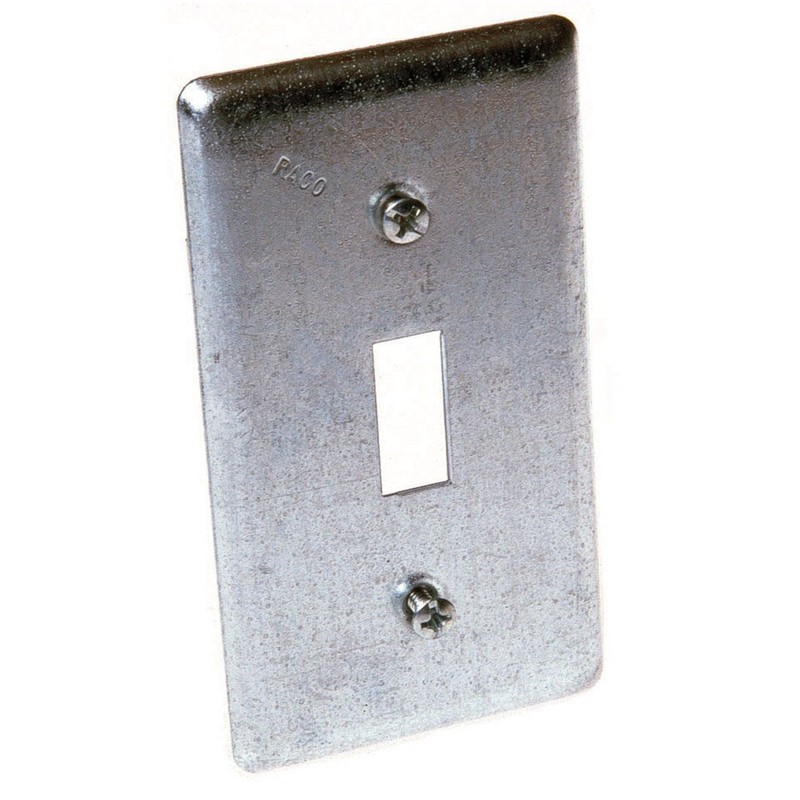 Hubbell Raco 865 Handy Box Cover, Toggle switch. Handy box covers are used to close a handy box. Captive mounting screws included. Cover corners are rounded to match contours of handy box. 2-5/16-Inch wide x 4-3/16-Inch tall. For 1 toggle switch.