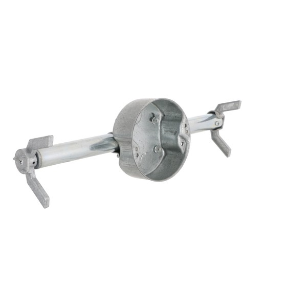 RACO 936 936/935 CEILING FAN BOX And SUPPORT is used to hang ceiling fans and light fixtures between joists or structural members safely and securely in old work applications where access is limited. Brace allows simple expansion, adjustable form 16" to 24". Recommended support load for ceiling fan is 35 pounds, for fixtures is 50 pounds. 4 half inch side, three bottom knock outs. Mounting hardware with high strength, hardened screws and instructions included. Acceptable for use in 2-hour rated walls and ceilings. UL Listed.