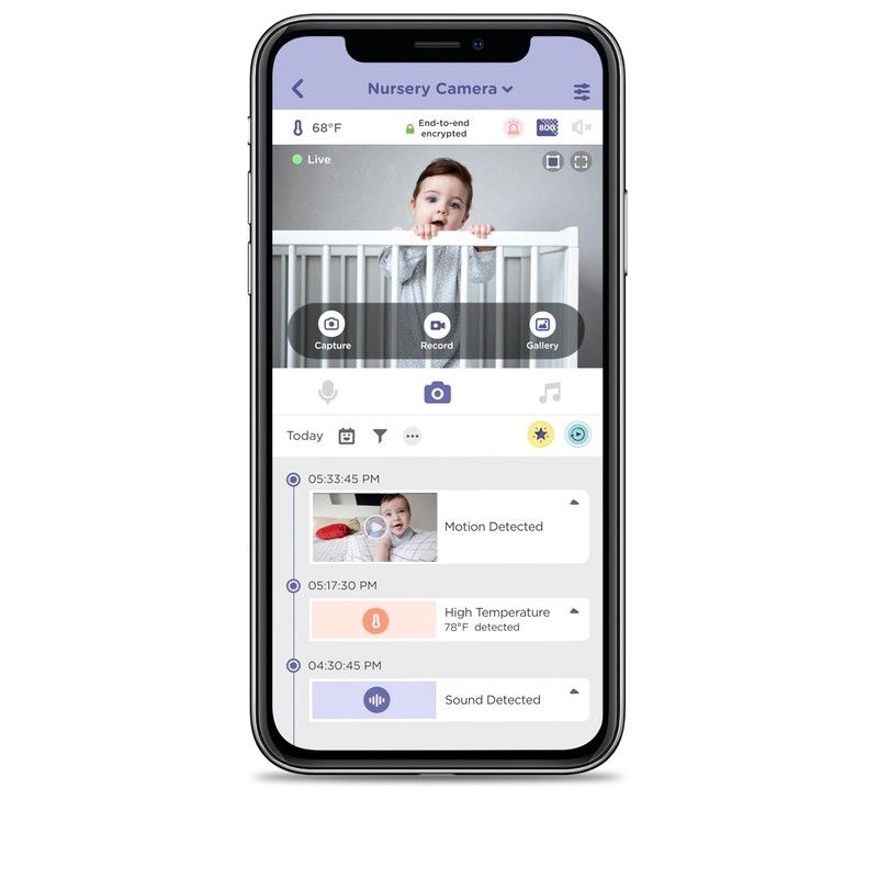 - Optimal comfort and soothing features: Keep baby comfortable & calm with integrated room temperature sensor, preloaded nature sounds, infrared night vision & two-way talk communication