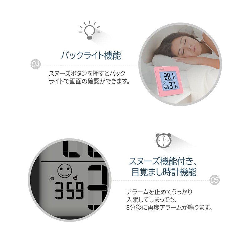 HuBDIC Simple Digital Clock Thermometer/Hygrometer/Hygrometer/Thermometer/Hygrometer/High Precision/Household/Thermometer/Hygrometer/Room Thermometer/Hygrometer/Small Tabletop/Pet Reptile/Wall Hanging/Calendar with Alarm and Snooze/Alarm Included, Variations/Variations/Living Room/Indoor Baby/HT-1 (Black)