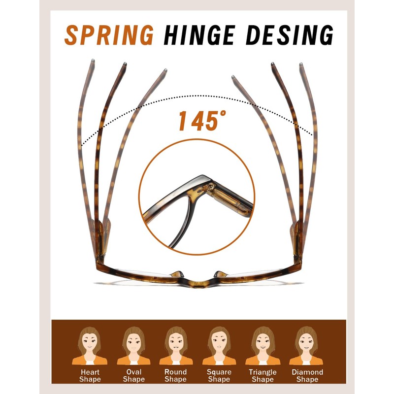 - 💎★Classic design★—— Equipped with spring hinges that can be slightly extended outwards, without clipping the face, suitable for people with different head shapes. The leopard-print half-moon design is both stylish and classic. Makes you look professional and stylish while reading or working.