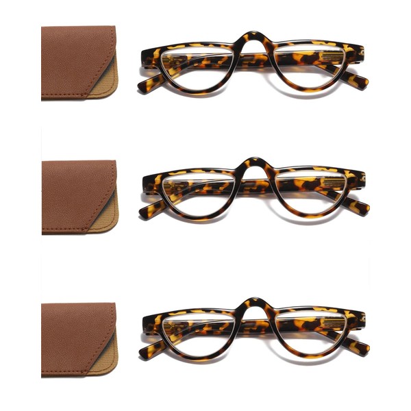Hubeye Half Moon Frame Reading Glasses 3 Pairs Retro Designer Lightweight Plastic Reader for Women Men With Spring Hinge +2.25