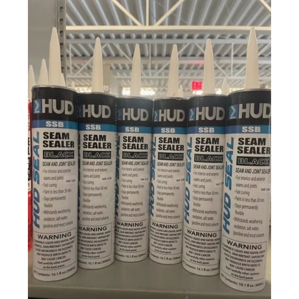 - HUD Seam Sealer, 300 mL Net Content, Cartridge Container, Composition: Titanium Dioxide, Toluene, Viscous Thixotropic Paste Form, White, Aromatic Odor/Scent, 400 g/L VOC, >200000 cPs Viscosity, Applicable Materials: Aluminum, Concrete Painted Metal, Plastic, Rubber, Unpainted Metal, Wood, -20 to 160 deg F