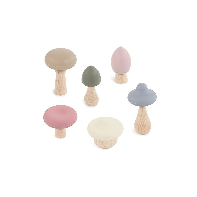Hudson Baby 6pc Wood and Silicone Mushroom Toy Set, Light, One Size