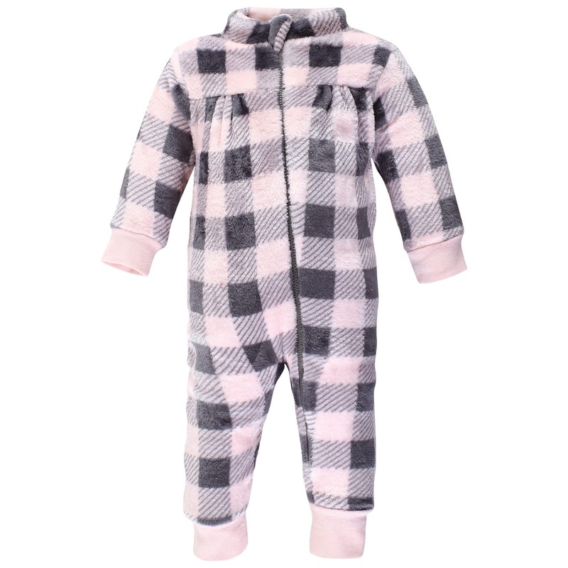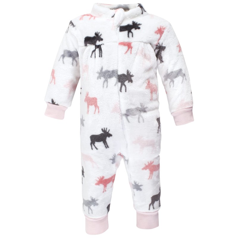 Hudson Baby Unisex Baby Plush Jumpsuits, Pink Moose, 6-9 Months