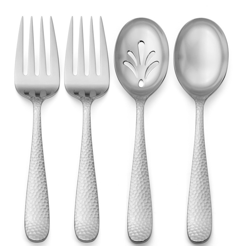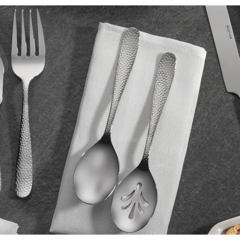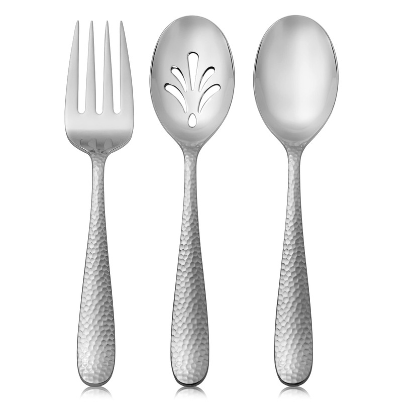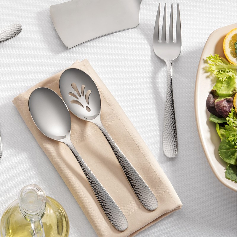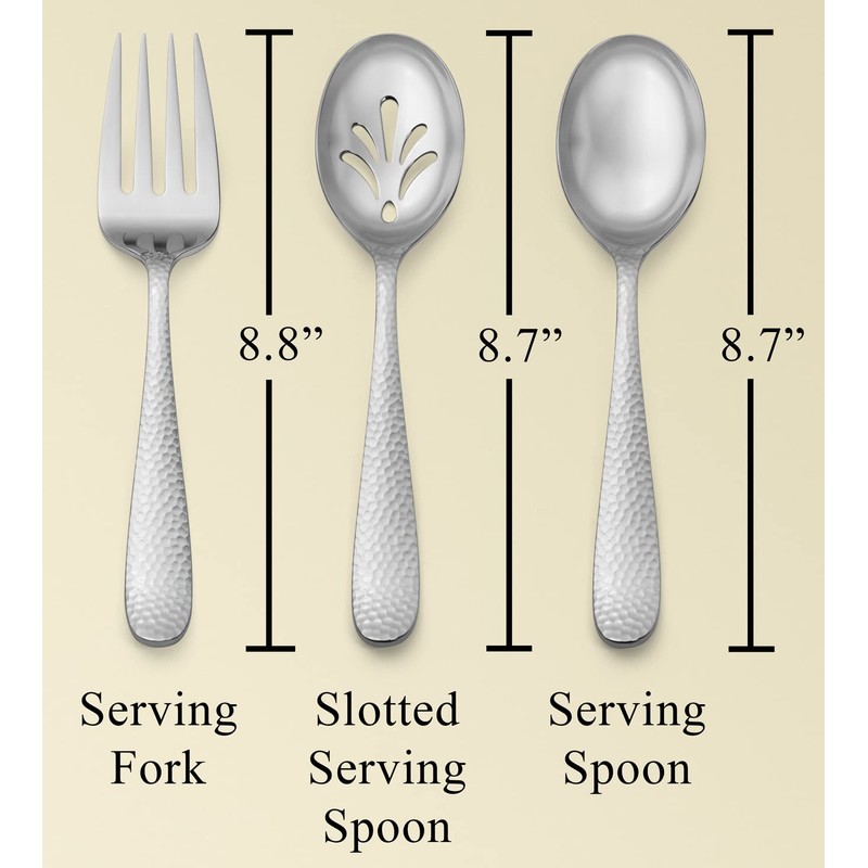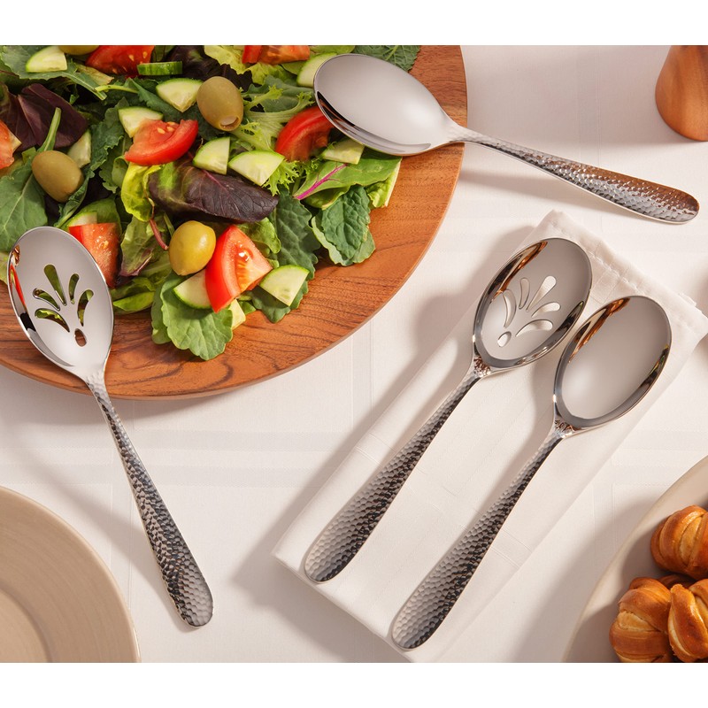 - Bergamo Hammered 9-piece hostess serving set: 3 serving forks, 3 serving spoons, 3 slotted serving spoons