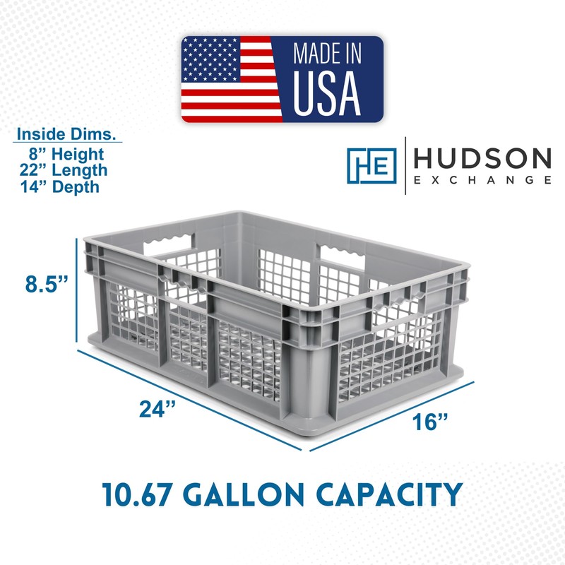 Hudson Exchange 24 x 16 x 8" (4 Pack) Mesh Straight Wall Handled Storage Cont...
