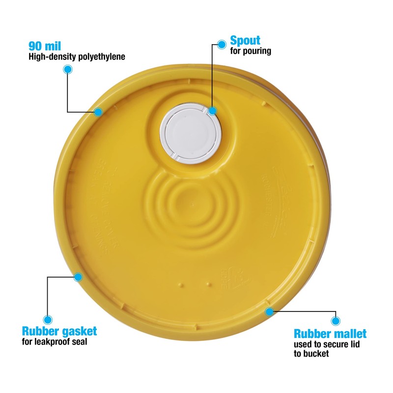 Hudson Exchange Lid with Spout and Gasket for 3.5, 5, 6, and 7 gal Buckets, HDPE, Yellow