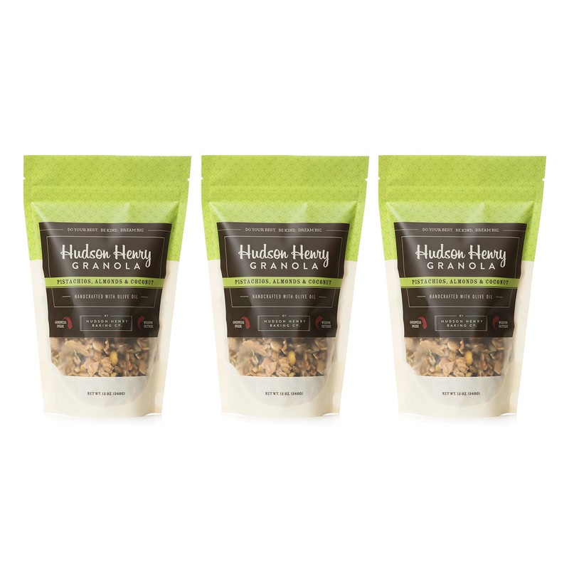 Hudson Henry Granola, Pistachios, Almonds & Coconut - 12 oz. package, Pack of 3 | Non-GMO Project Verified