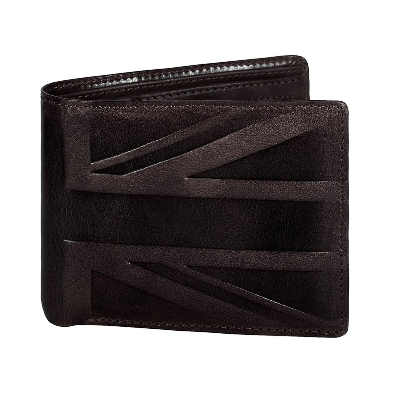 Hudson & James Designer London Real Distressed Leather Mens Wallet with Zip Coin Pocket Credit Carder Holder Bifold Purse UK Union Jack (Brown Crunch)