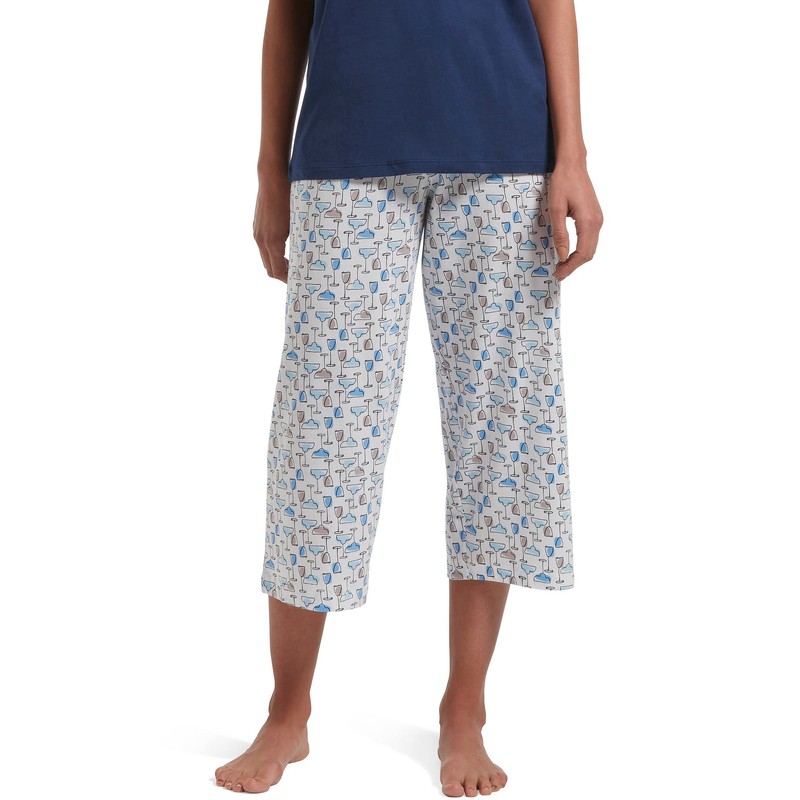HUE Womens Basic Printed Knit Capri Pajama Sleep Pant, Made with Temperature Control Technology, White - ICY Margarita, Medium