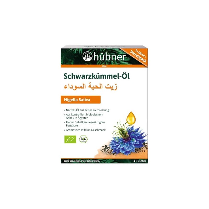 Huebner Organic Black Cumin Oil, 3 x 100 ml, Storage Pack (1)