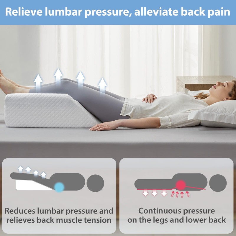 - Best thoughtful idea: All of us have suffered from back pain, leg, knee, ankle injuries, and surgery. The wedge pillow for knee pain is a unique healing item for those recovering from surgery to help ease their pain and give them the care they need most! In addition, the leg pillow for back pain can be used for daily living such as sleeping, reading, relaxing, and working to bring comfort to life