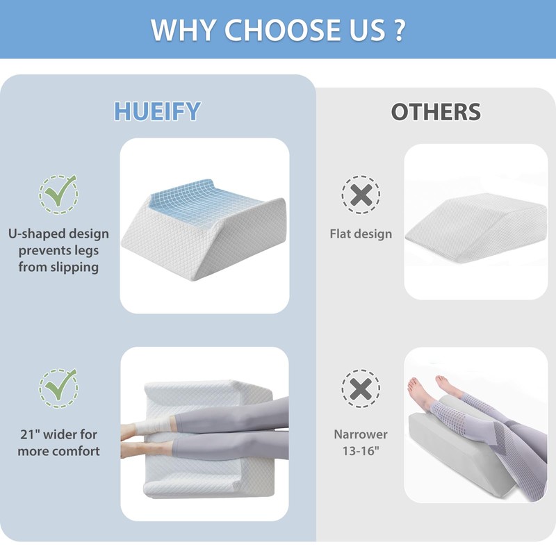 - Ease discomfort leg elevation pillows for after surgery: Backaches, knee soreness, and varicose veins frequently disrupt your sleep. Our knee surgery pillow offers help by raising your legs, alleviating pain for a more comfortable and restful sleep. A comfortable night's rest sets the stage for a great day ahead