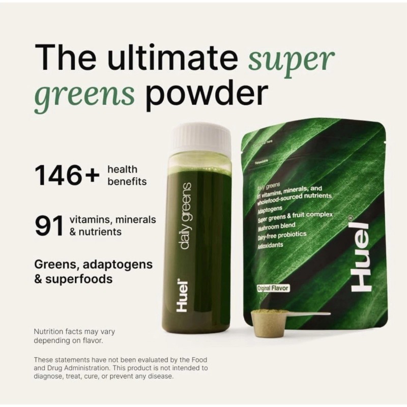 Huel Daily Greens Superfood Powder 91 Vitamins, Minerals, Adaptogens 30 Servings.