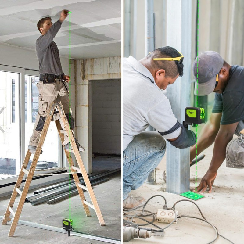 - ⭐【Bright and Visible Reference Points】: Equipped with OSRAM laser unit provides bright green laser and stable performance. Bright green laser spots provide good visibility in bright working environments, which can help for leveling window and balcony, bricklaying, wall and railing construction, measuring whether the wall is vertical. Can also be widely used in construction, HVAC, electrical engineering, steel bolt frames, etc.