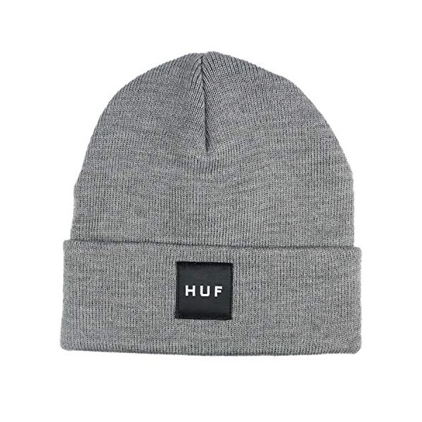 Huff Men's Knit Cap, Box Logo, Hat, Skater, Brand, Street, GREYHEATHER