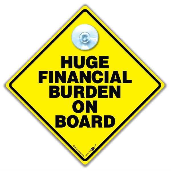Huge Financial Burden on Board Autoschild 14cm x 14cm Joke Baby on Board Schild mit Saugnapf