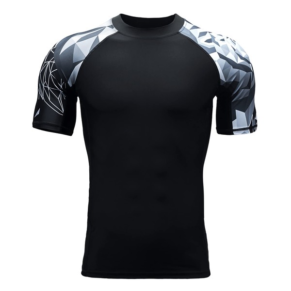 HUGE SPORTS Mens Rash Vest- Wildling Series Rash Guard Short Sleeve Quick Drying Wetsuit Swimming Tops for Surfing BJJ Jiu Jitsu(Bear,L)