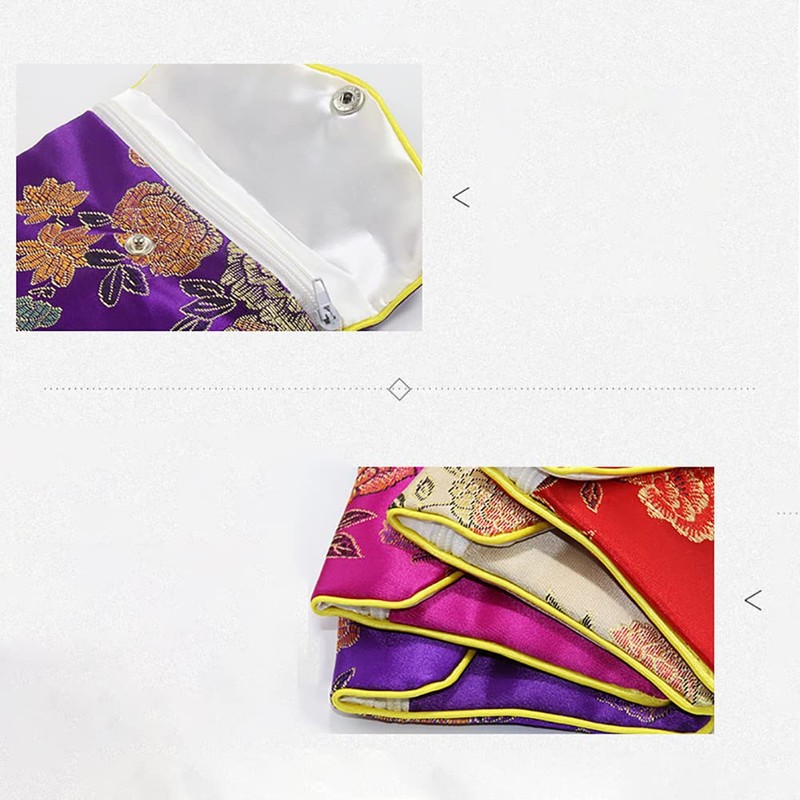 HugeDE 10 Pcs Silk Jewelry Pouch Satin Gift Bags Brocade Embroidered Bags Chinese Style Mini Purse Damask Coin Pouch 5 Colors