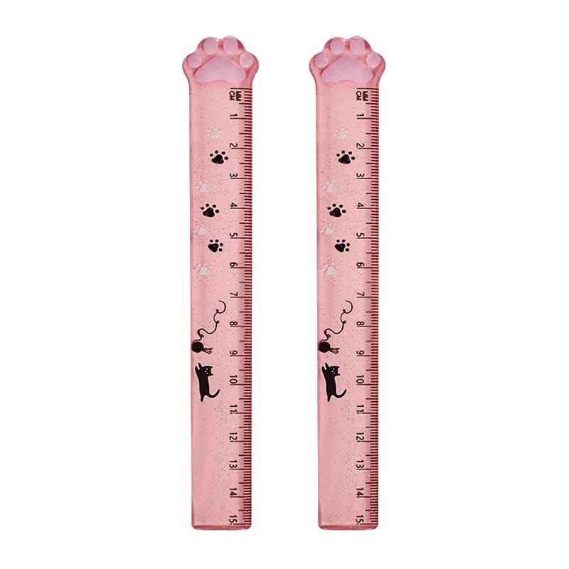 HugeDE 2 Pcs 15cm Pink Transparent Plastic Cat Paw Straight Ruler
